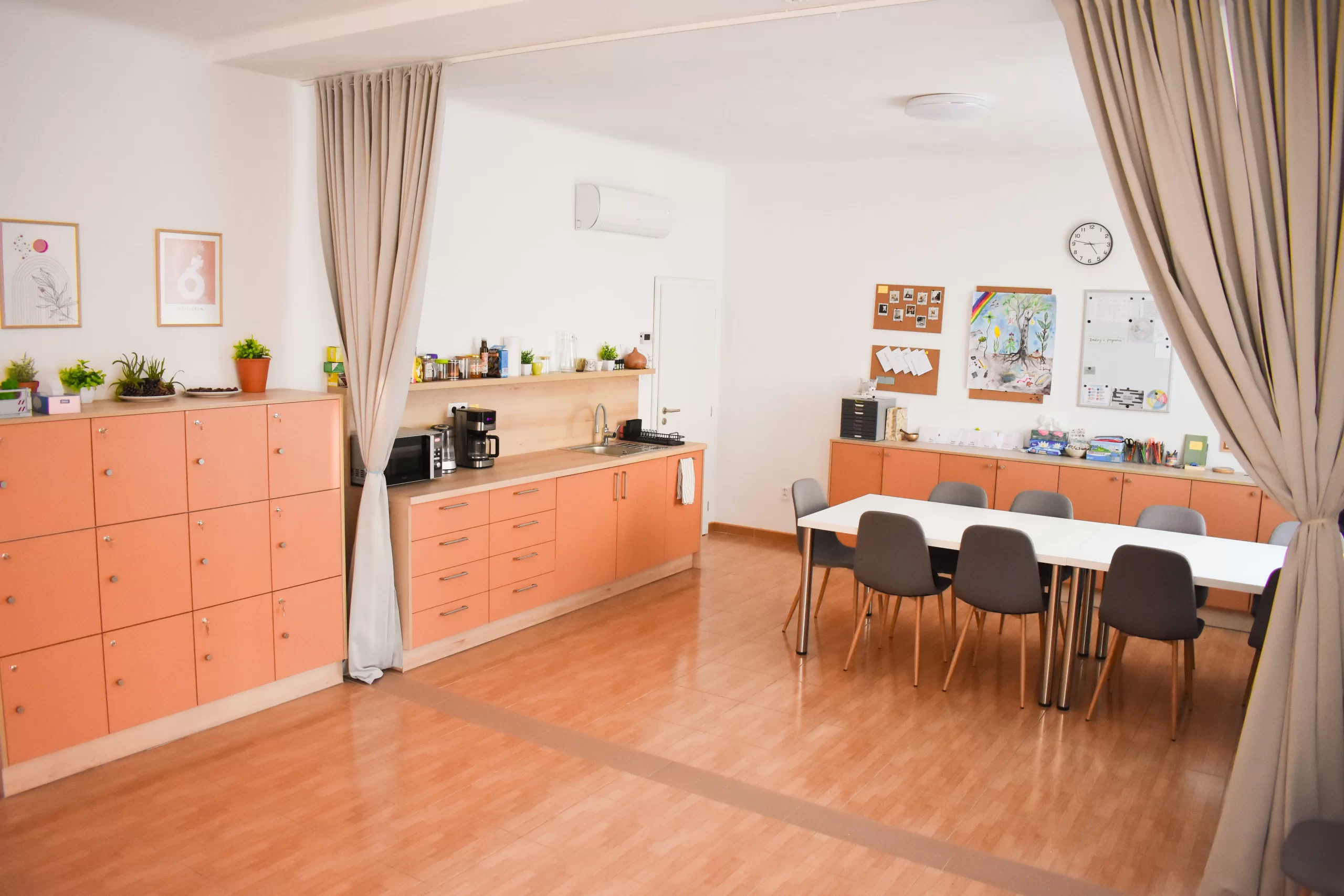 Denní stacionář sídlí na ulici Martinkova, Černá Pole, Brno. V prostoru stacionáře je plně vybavená kuchyňka s lednicí, mikrovlnkou, varnou konvicí a myčkou. Klienti mají k dispozici uzamykatelné skříňky, kde mohou nechávat své osobní věci. Součástí vybavení stacionáře jsou také psací a výtvarné potřeby, relaxační pomůcky, podložky na cvičení a další. Klientům doporučujeme přinést si vlastní přezůvky a docházet v pohodlném oblečení vhodném pro rozcvičky a relaxace. Oběd, který si pacienti zajišťují sami, je možné ohřát ve společné kuchyňce.